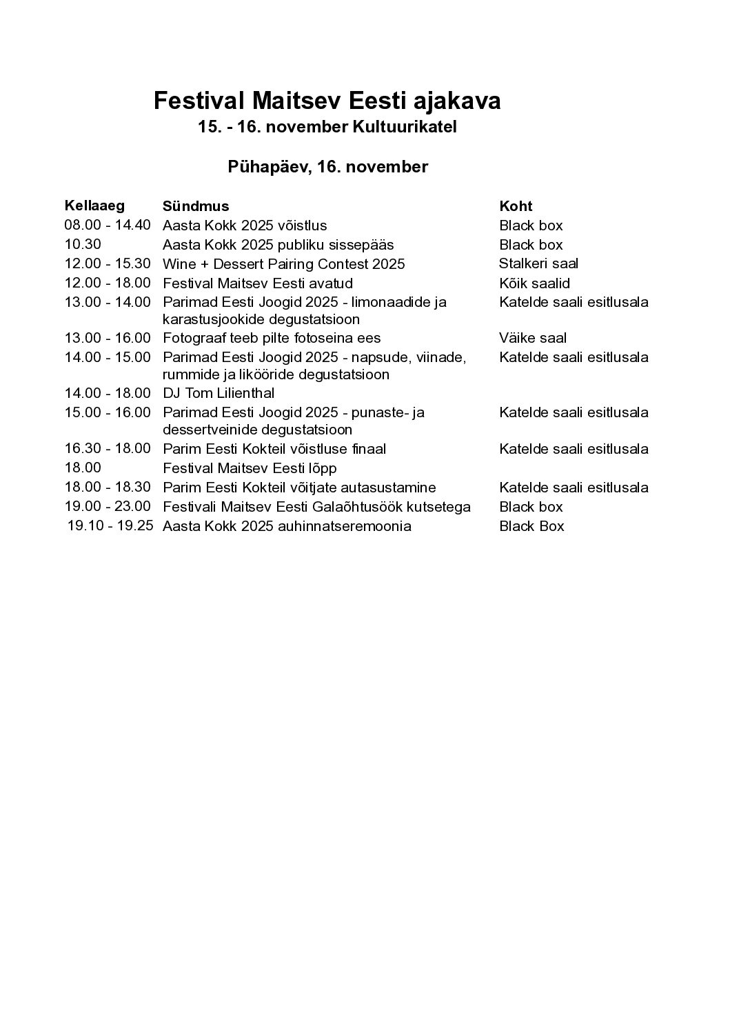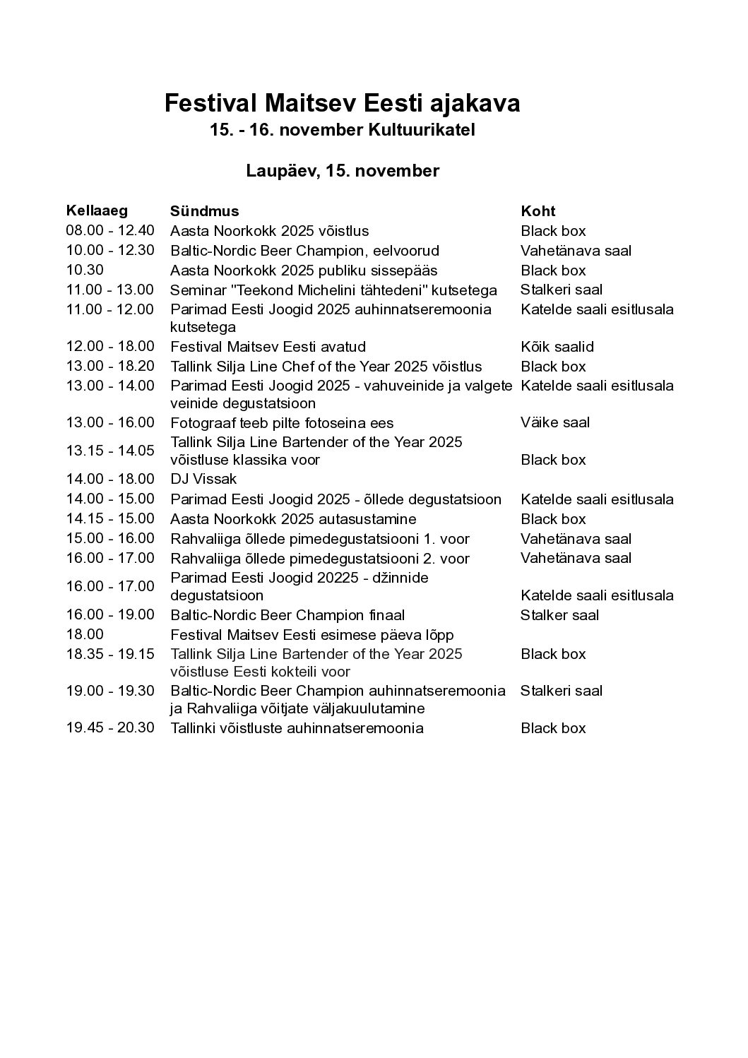 NB! Festival Maitsev Eesti jätab endale õiguse teha programmis muudatusi.